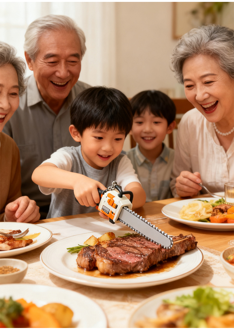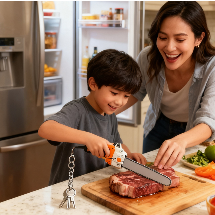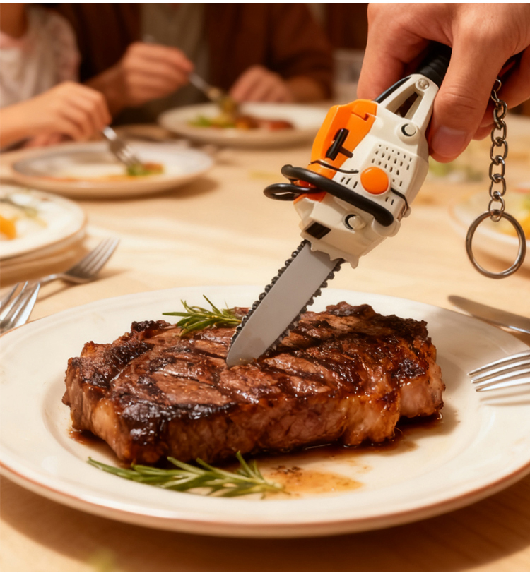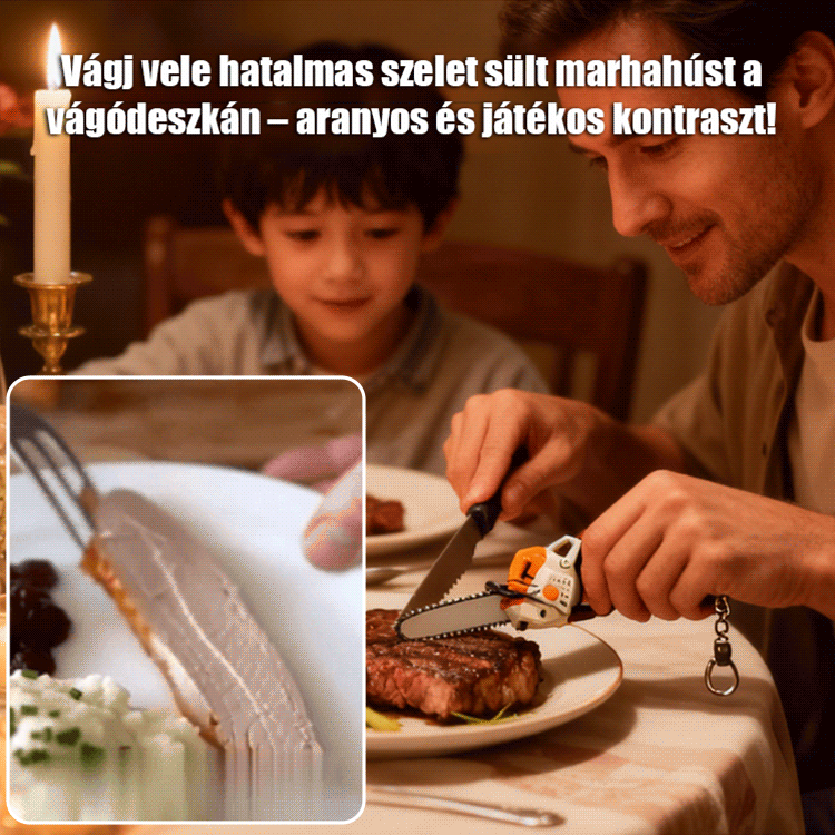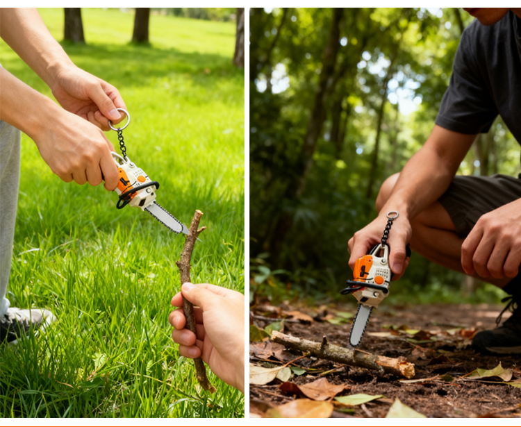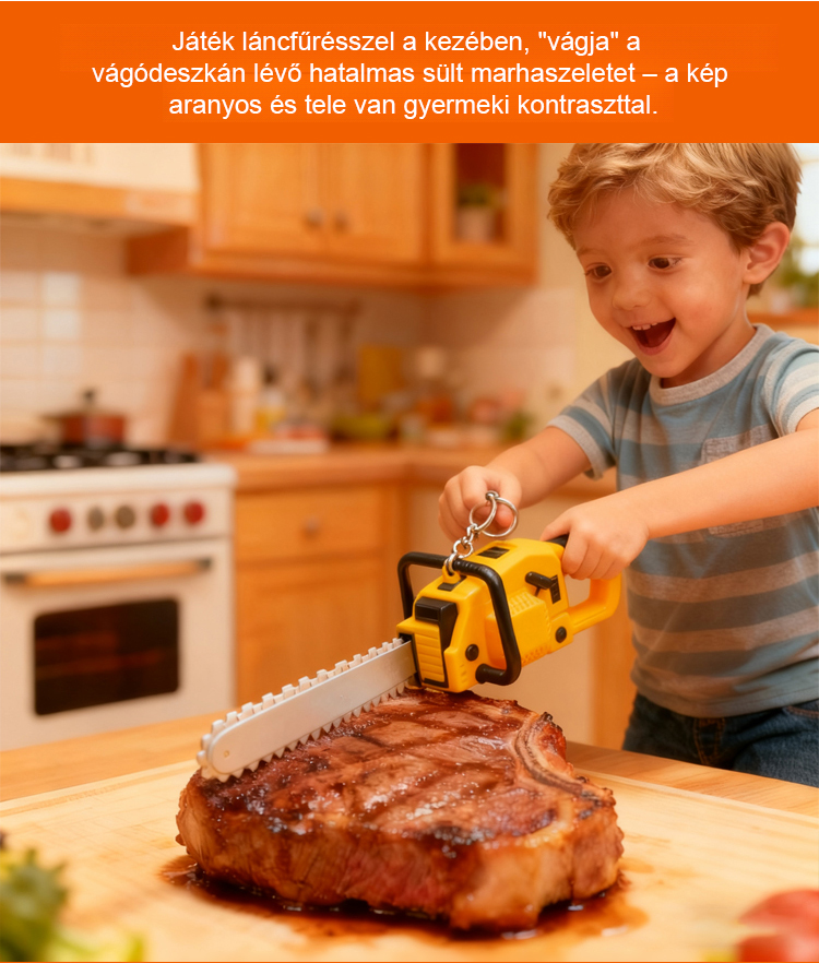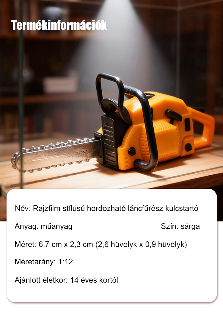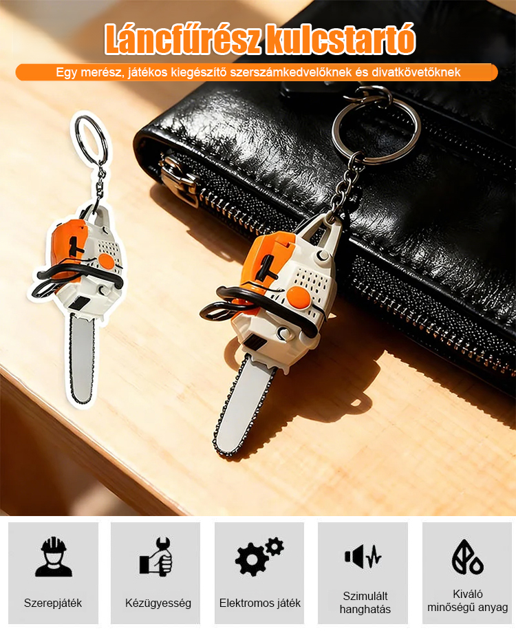 Rajzfilm hordozható láncfűrész kulcstartó függő