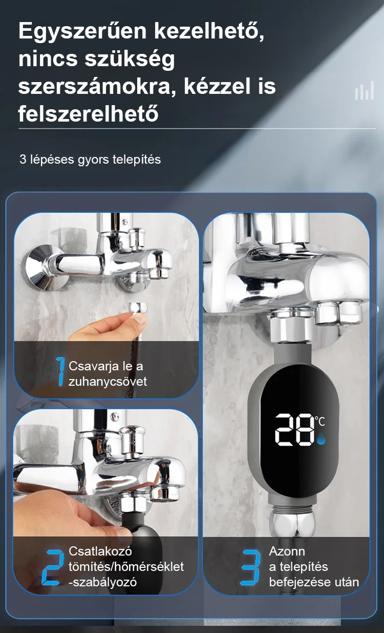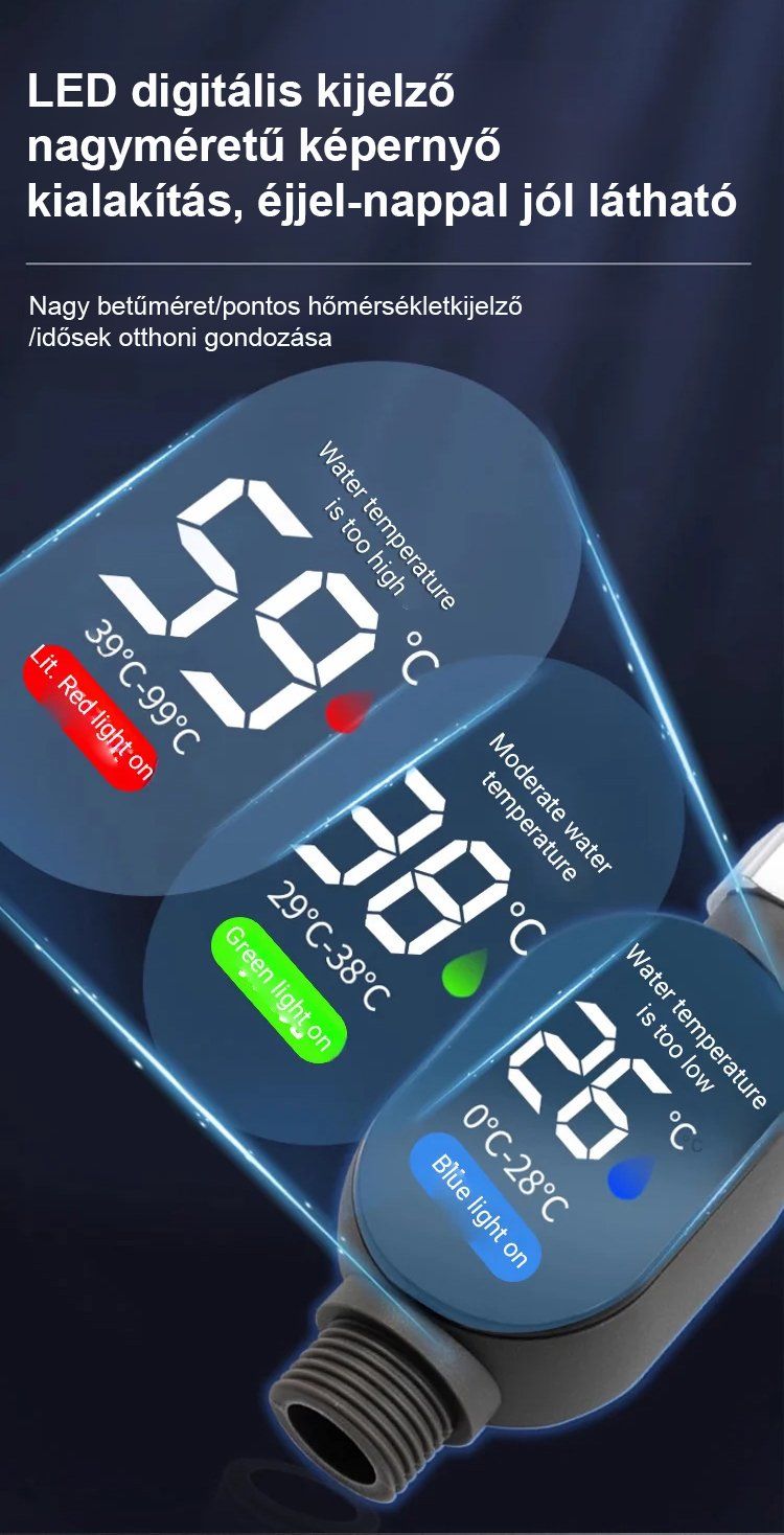 Csaptelep hőmérő zuhanyzó univerzális vízhőmérséklet-szabályozó látható intelligens