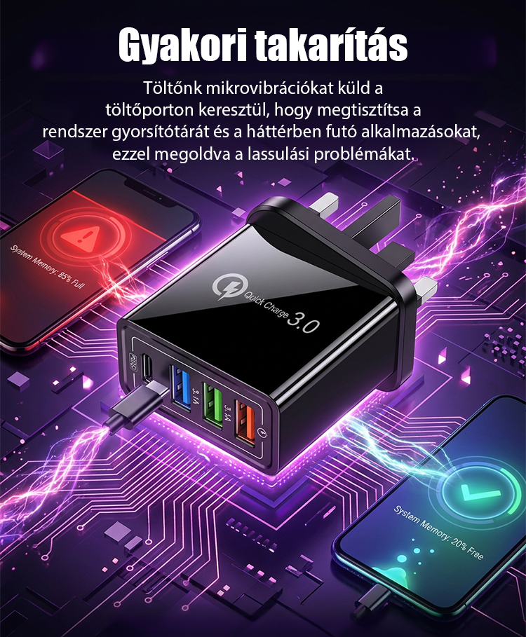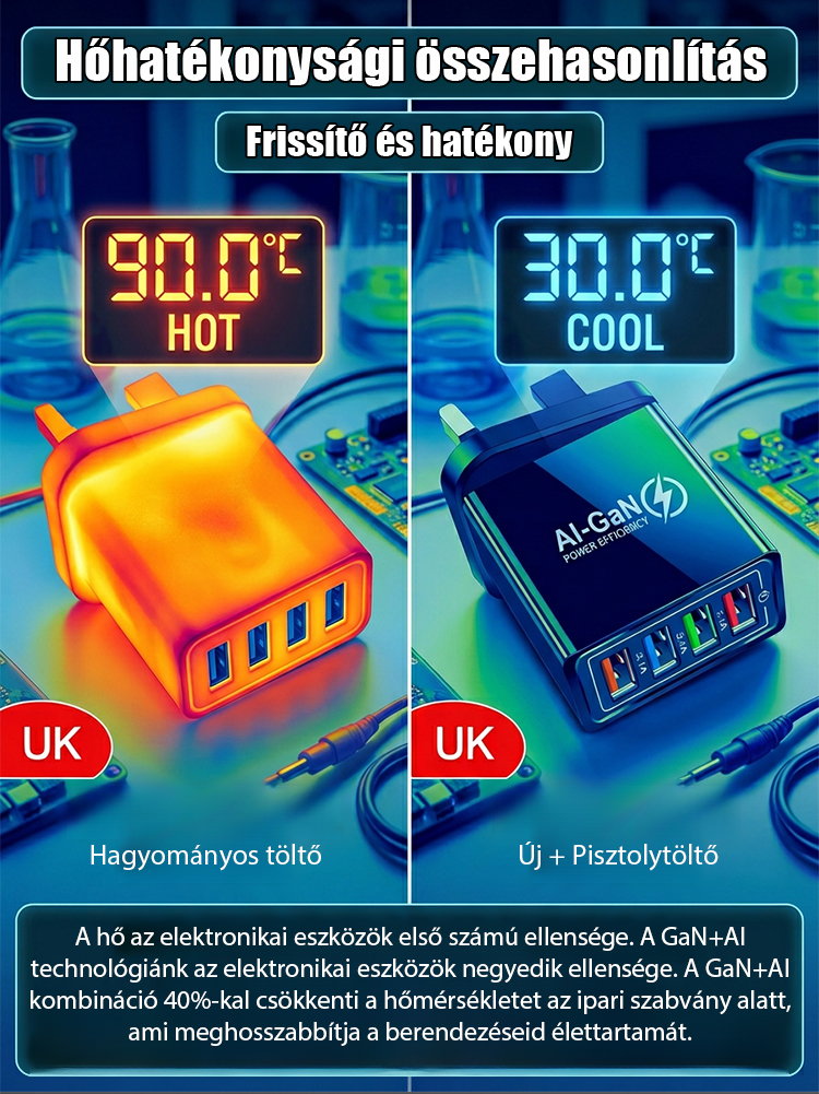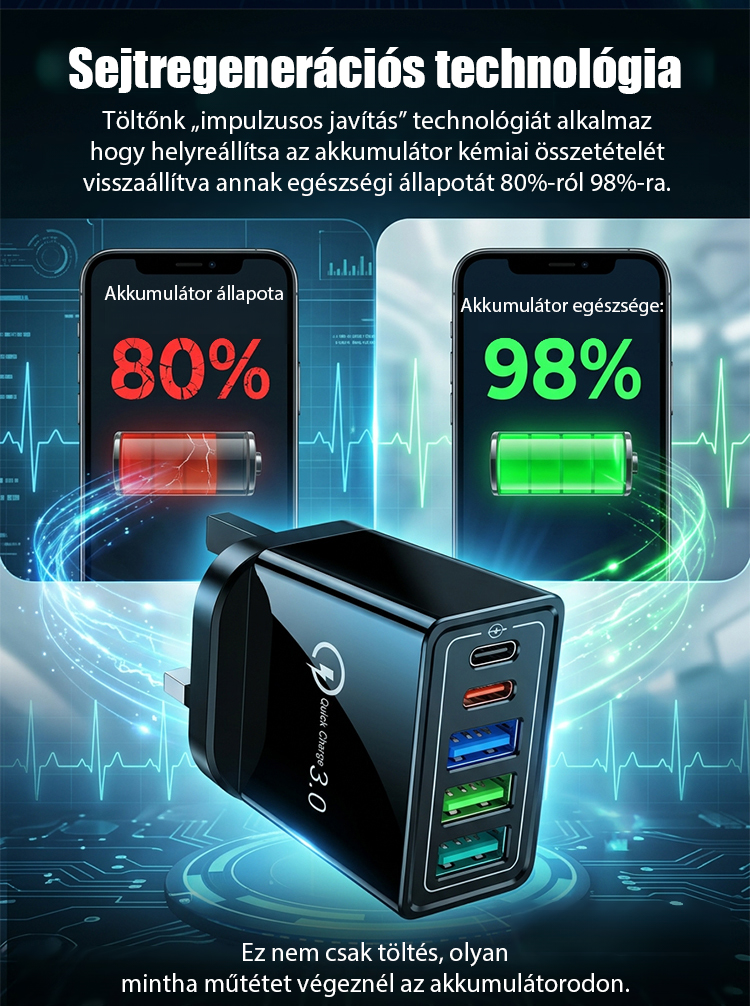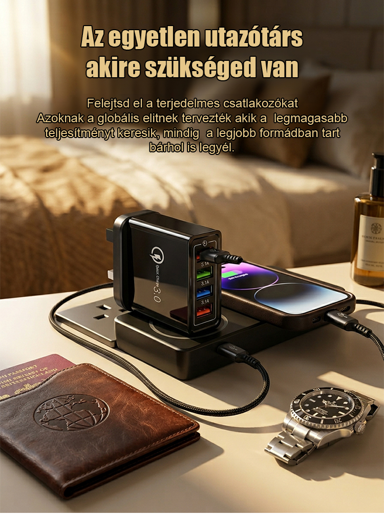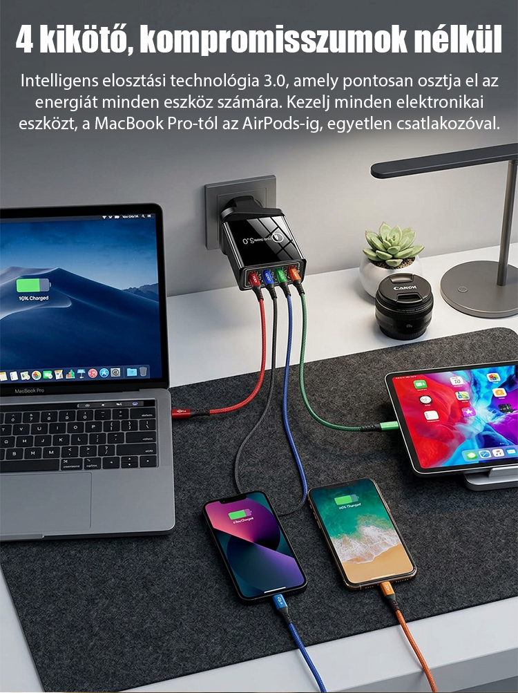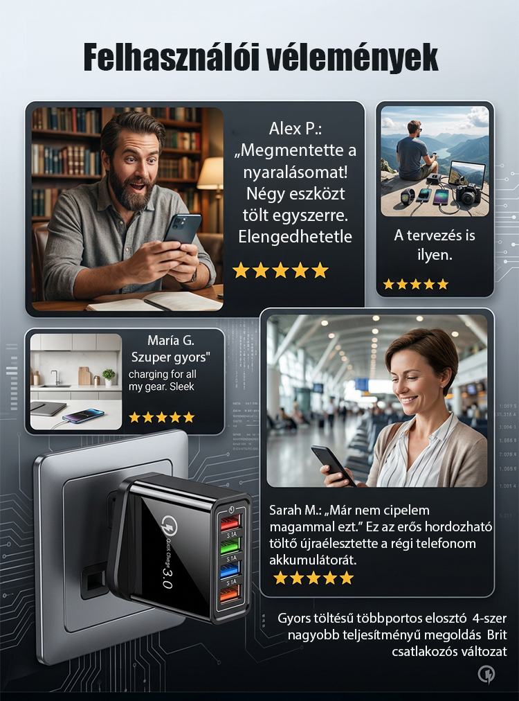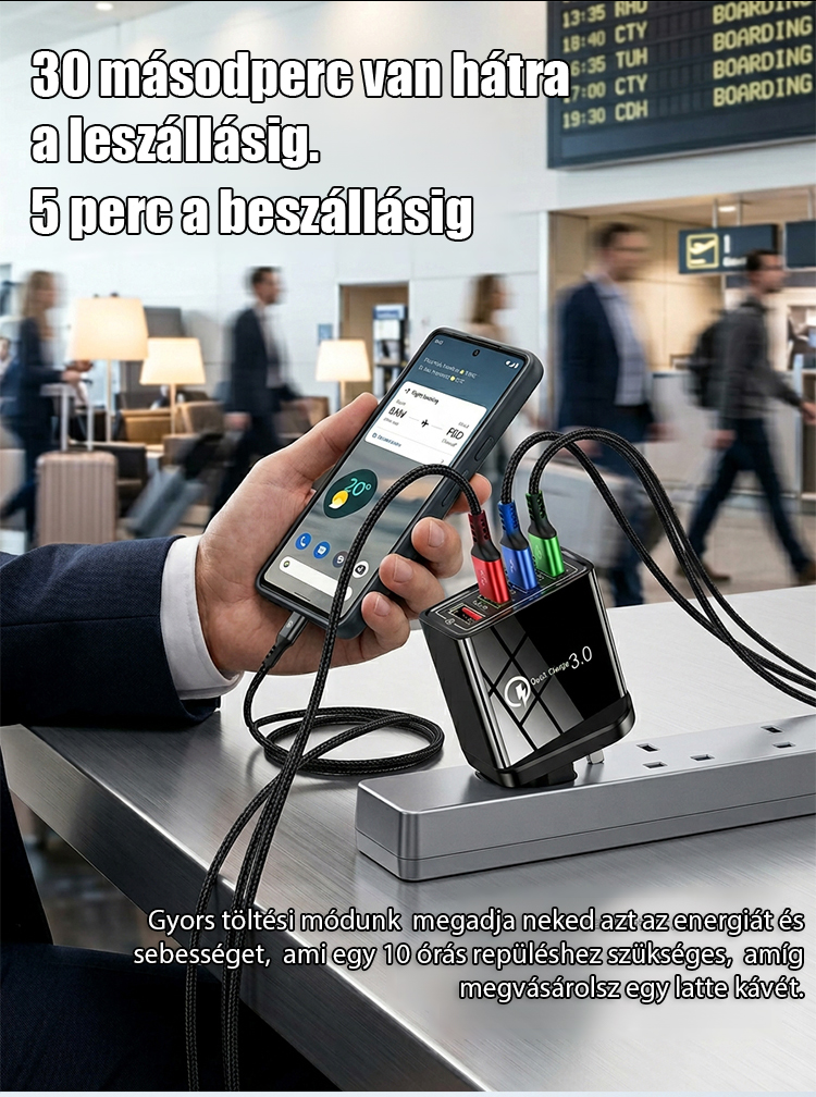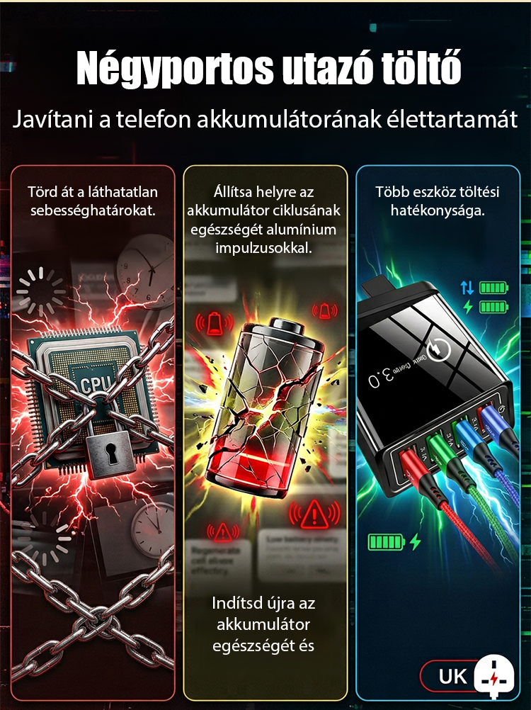 【Növelje a telefon akkumulátorának élettartamát】 Négyportos utazótöltő