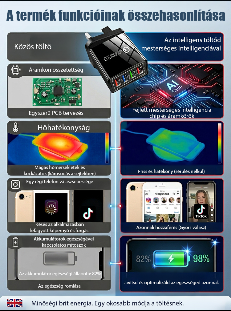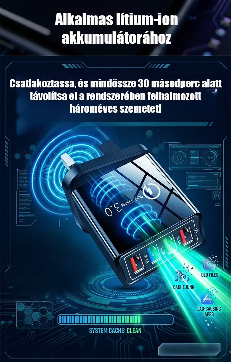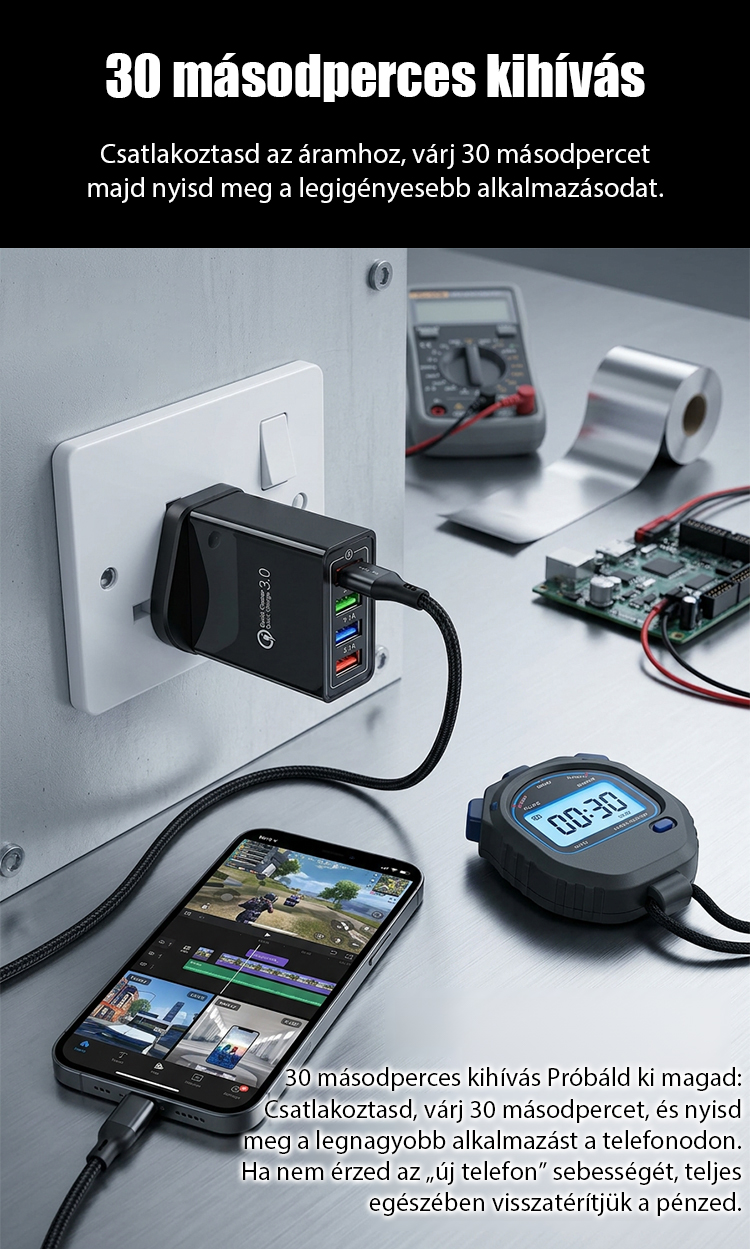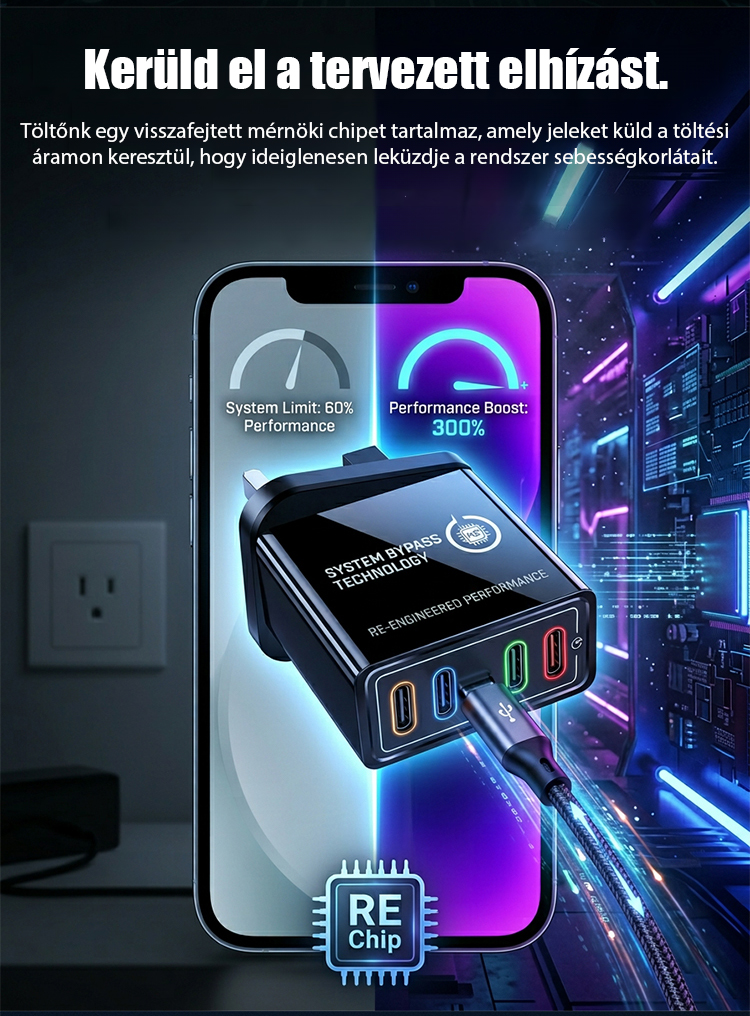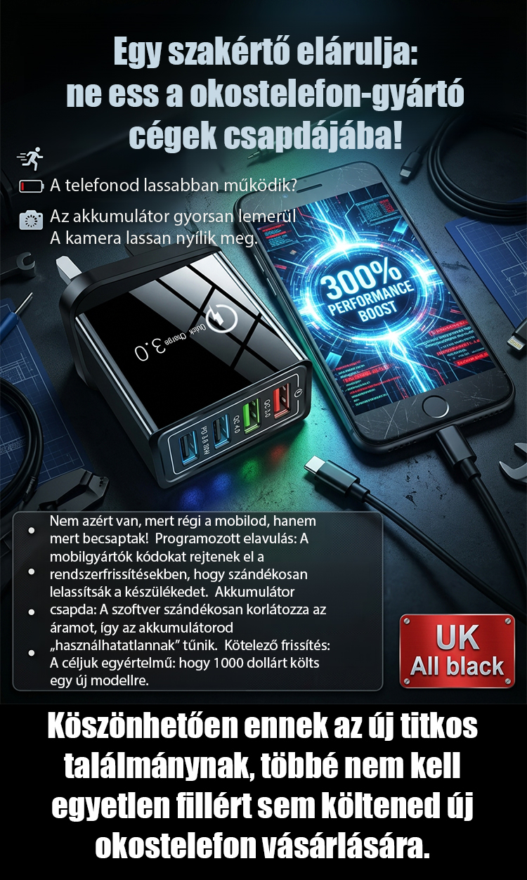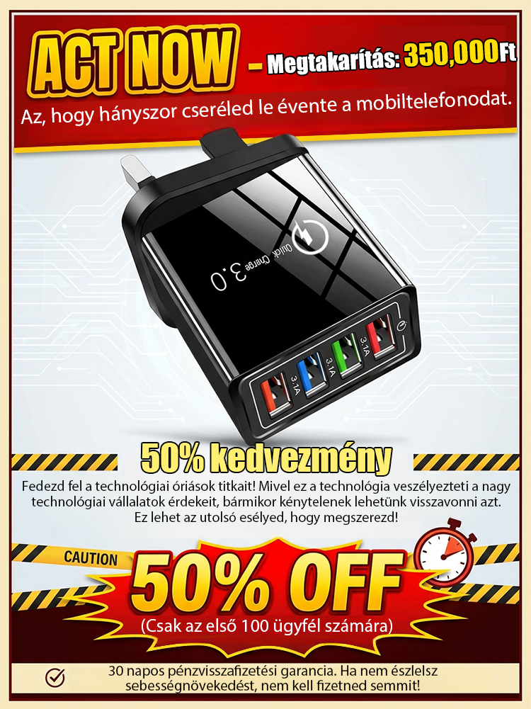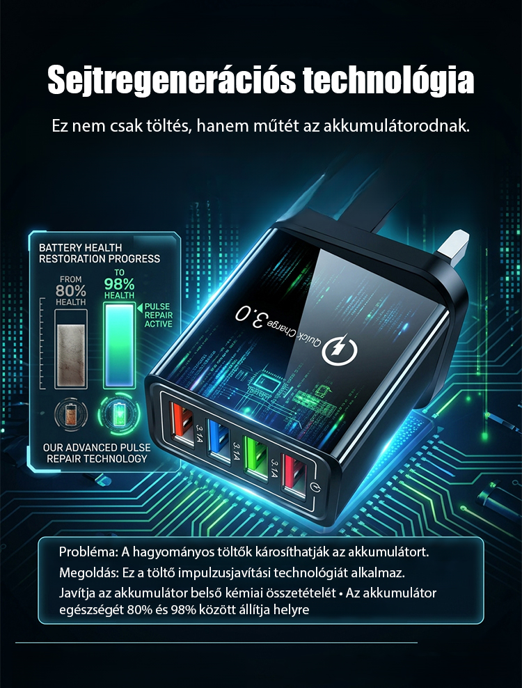 【Növelje a telefon akkumulátorának élettartamát】 Négyportos utazótöltő